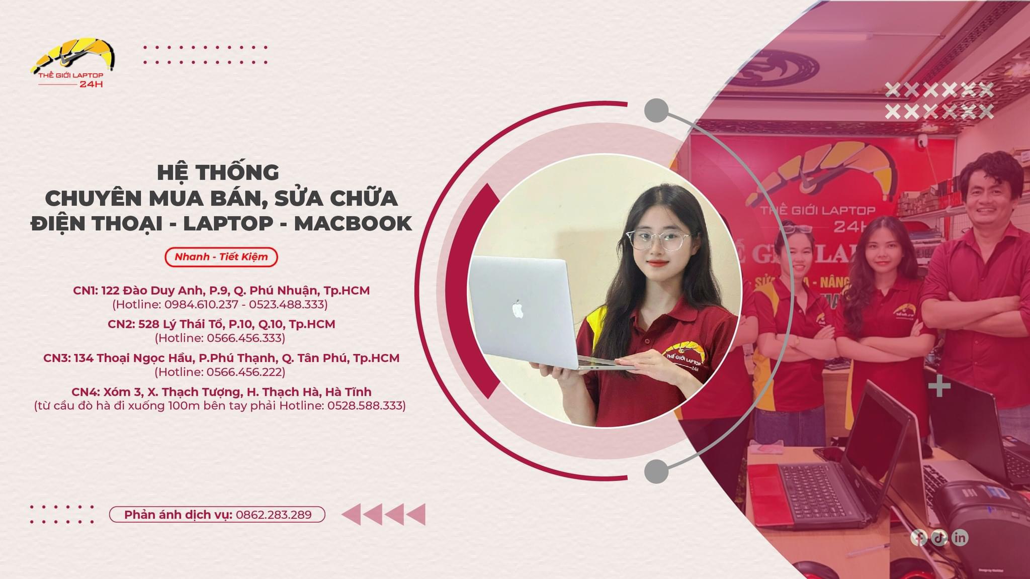 Dịch vụ THAY BÀN LỀ MACBOOK QUẬN 4 của Thế Giới Laptop 24h: ☑️ Uy tín ☑️ Giá rẻ ☑️ Thợ cẩn thận - nhiệt tình. Liên hệ ngay ☎️ 0862.283.289 để được tư vấn miễn phí và hỗ trợ nhanh chóng